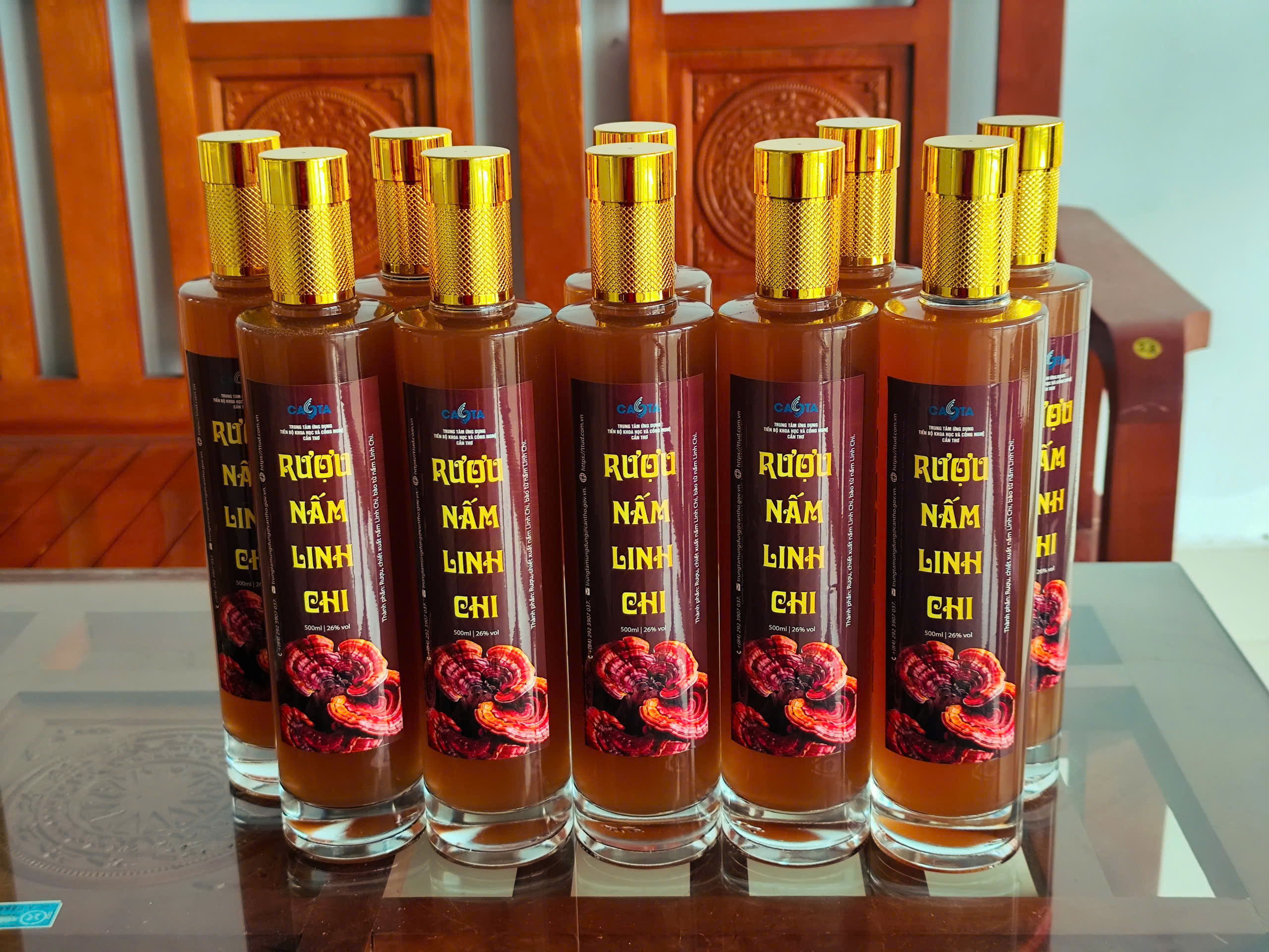 Rượu nấm linh chi thành phẩm được cho vào chai thủy tinh, sau đó đóng nắp và được bảo quản ở nhiệt độ phòng, tránh ánh nắng trực tiếp.